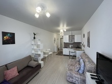 Продается квартира-студия площадью 32 кв.м в жилом состоянии на 17 этаже 18-этажного монолитного дома в ЖК "Южный Квартал".